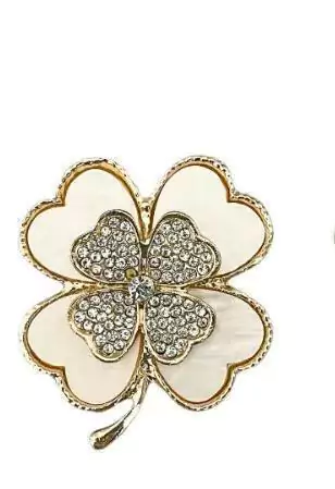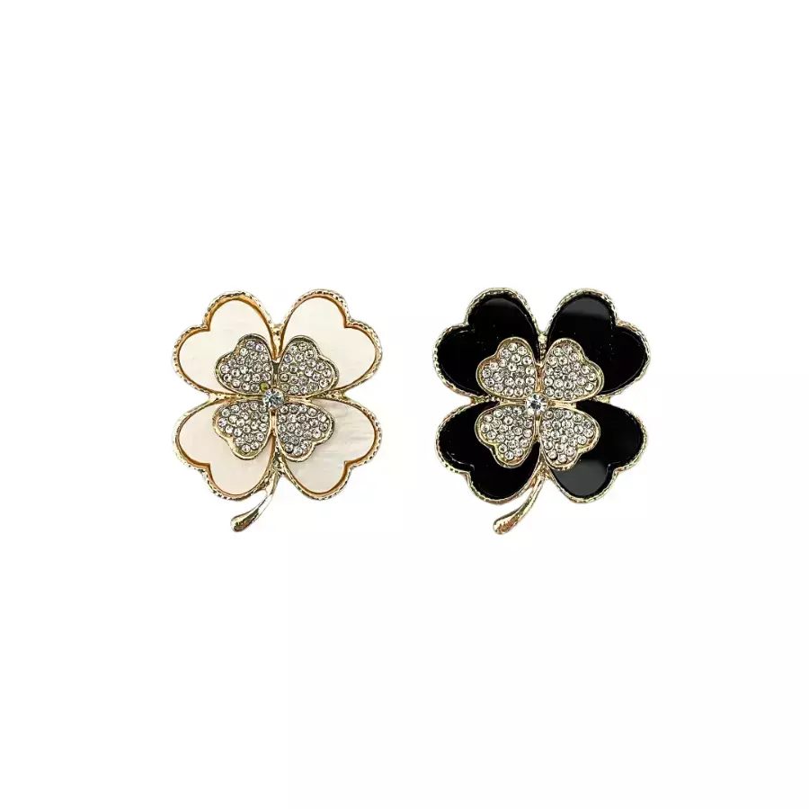 Se os trevos são sinais de sorte, imagina a versão em metal dourado com pétalas de madrepérola resinada e miolo de cristais austríacos! Essa é nossa nova coleção do broche de ímã, disponível em duas cores: preto e branco.